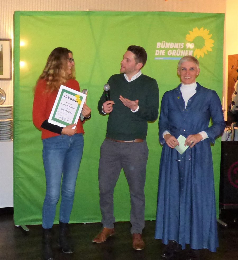 Als Mitglied Nummer 400 wurde Almut Irmscher von Kreissprecher Dr. Julian Münster und Kreissprecherin Bernadette Reinery-Hausmann begrüßt.